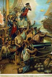 | Keywords: surreal When Captain Pearson asked Jones to surrender, Jones replied, “I have not yet begun to fight!” Both sides tried to board the other’s ship but to no avail, but by 10:30 pm, Jones and the American sailors took Serapis, forcing the surrender from Captain Pearson. Captain John Paul Jones hailing HMS Serapis during the action from the deck of the frigate Bonhomme Richard, 23 September 1779. Artwork by Paul Moran. During the action, all firing ceased and for several moments Captain Pearson of the Serapis called out, "Have you struck your colors?" "I have not yet begun to fight," replied Captain Jones, were upon the firing resumed. Serapis later struck her colors. Lithograph by Haves Lithographing Co. NHHC Photograph Collection, NH 56757-KN (Color). When Captain Pearson asked Jones to surrender, Jones replied, “I have not yet begun to fight!” Both sides tried to board the other’s ship but to no avail, but by 10:30 pm, Jones and the American sailors took Serapis, forcing the surrender from Captain Pearson. Captain John Paul Jones hailing HMS Serapis during the action from the deck of the frigate Bonhomme Richard, 23 September 1779. Artwork by Paul Moran. During the action, all firing ceased and for several moments Captain Pearson of the Serapis called out, "Have you struck your colors?" "I have not yet begun to fight," replied Captain Jones, were upon the firing resumed. Serapis later struck her colors. Lithograph by Haves Lithographing Co. NHHC Photograph Collection, NH 56757-KN (Color). |