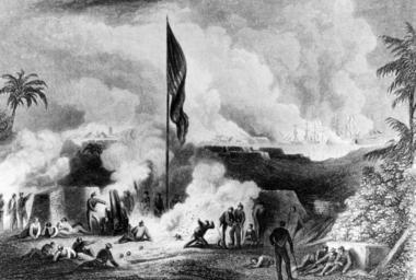 Keywords: blackandwhite monochrome surreal outdoor black and white On 9 March 1847, an Army-Navy force began the siege of Veracruz, Mexico. The Naval force was commanded by Commodore David Conner and the Army force was led by Major General Winfield Scott. The force was opposed by the Castle of San Juan d’Ulloa. Between 9 and 10 March, approx 12,000 US troops were landed on the beaches, along with their horses, mules, artillery, and supplies. Veracruz surrendered on the 29th, and the forces made their way to Mexico City. Mexican-American War – Veracruz, Mexico. The Battle of Veracruz, Mexico. Steel engraving drawn by H. Billlings and engraved by D.G. Thompson, 1863. The engraving shows the American squadron bombing the Mexican Fort. NHHC Photograph Collection, NH. 65708 On 9 March 1847, an Army-Navy force began the siege of Veracruz, Mexico. The Naval force was commanded by Commodore David Conner and the Army force was led by Major General Winfield Scott. The force was opposed by the Castle of San Juan d’Ulloa. Between 9 and 10 March, approx 12,000 US troops were landed on the beaches, along with their horses, mules, artillery, and supplies. Veracruz surrendered on the 29th, and the forces made their way to Mexico City. Mexican-American War – Veracruz, Mexico. The Battle of Veracruz, Mexico. Steel engraving drawn by H. Billlings and engraved by D.G. Thompson, 1863. The engraving shows the American squadron bombing the Mexican Fort. NHHC Photograph Collection, NH. 65708 |