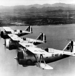 Keywords: blackandwhite monochrome vehicle aircraft airplane black and white NH 83924: Grumman F3F-2 Fighters, of Marine Fighting Squadron Two (VMF-2). Flying in formation, during the later 1930s. Planes are (from front to back) Bureau #s 0977, 0973 & 0979. Courtesy of the Naval Historical Foundation. Collection of Chief Boatswains Mate Ralph E. Turpin. U.S. Naval History and Heritage Command Photograph. (2015/12/31). NH 83924: Grumman F3F-2 Fighters, of Marine Fighting Squadron Two (VMF-2). Flying in formation, during the later 1930s. Planes are (from front to back) Bureau #s 0977, 0973 & 0979. Courtesy of the Naval Historical Foundation. Collection of Chief Boatswains Mate Ralph E. Turpin. U.S. Naval History and Heritage Command Photograph. (2015/12/31). |