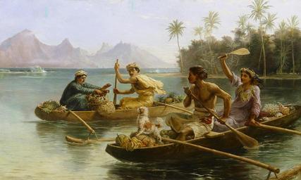 | Keywords: Nicholas Chevalier, Race to the market, Tahiti, 1880, oil on canvas.jpg  en Nicholas Chevalier Race to the market Tahiti 1880 oil on canvas 102 x 169 cm Art Gallery of New South Wales Sydney http //www bonhams com/auctions/19375/lot/32/ 1880 Creator Nicholas Chevalier PD-old-100 DEFAULTSORT Chevalier Nicholas Nicholas Chevalier People of Tahiti History of Tahiti 19th-century oil on canvas paintings 1880 paintings from Russia Outrigger canoes of Polynesia 19th-century paintings of dogs Tahiti in art Oil paintings of dogs 19th-century paintings location missing Images from Bonhams |