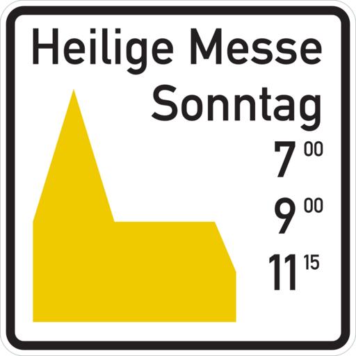 | Keywords: Nichtamtliches Hinweiszeichen - Katholische Messe, Version nach 1981.svg de Hinweiszeichen Katholische Messe; Sinnbild in RAL Verkehrsgelb Nicht in der StVO aufgeführt aber vom Bundesverkehrsministerium veröffentlichtes Zeichen Die Typographie stammt aus der Zeit nach 1981 als die DIN-Normschriften überarbeitet worden waren own selbst gezeichnet von Mediatus Mediatus 09 Juni 2016 + Signs User Mediatus/no-new-version Cc-zero SVG road signs in Germany German language signs Mass liturgy Church signs in Germany Church-related road signs Diagrams of historic road signs of Germany 1992 set Diagrams of historic road signs of Germany 2013 set Diagrams of road signs of Germany |
