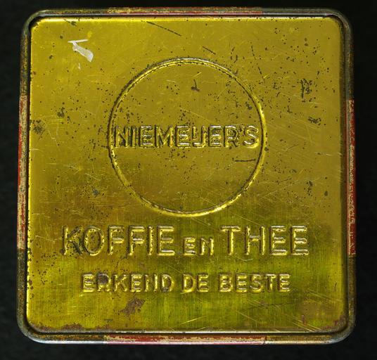 Keywords: Niemeijers KOFFIE en THEE blik foto 4.JPG Very old product that is not produced and not sold any more Note that some tins may look the same but when looked for carefully there are some slight differences For more info see http //www tincollectors nl/ tincollectors nl or email info tincollectors nl own 2014-10-31 13 50 34 Alf van Beem CC-zero Trademarked Coffee tins