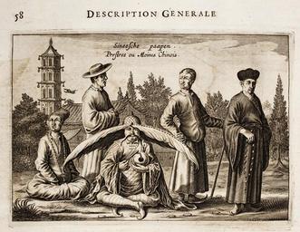 | Keywords: Nieuhof-Description-générale-de-la-Chine-1665 0852.tif Information Draughtsman Creator Johan Nieuhof Engraver from w c Sineesche-paapen-0103-cropped png copied with corrections fr Prêtres ou moines chinois dessinés entre 1655-1657 D'apres Lach et Kley 1993 la personne à l'extreme gauche est un Lama Mongol au milieu avec le grand chapeau tient en main un Muyu Poisson en Bois L'homme à droit est un prêtre bouddhiste Les autres debout sont des moines bouddhistes en Chinese priests and monks drawn by the Dutch visitors in 1655-1657 According to Lach Kley 1993 the leftmost sitting person wears the headgear of a Mongol Lama; the sitting person in the middle with a big hat holds a muyu wooden fish The standing man on the right with beads is a Buddhist priest The other two standing people may be Buddhist monks Sineesche paapen Chinese monniken of priesters Links een Mongoolse Lama de grote hoed in het midden is een bedelaar met een houten vis of Chinees tempelblok een klopinstrument in de hand Rechts een Boeddhistische priester met kralen De twee staande mannen kunnen Boeddhistische monniken zijn PD-Art-100 D-Vorm Peace Palace Library collection de la Chine enrichie d'un grand nombre de tailles douces / Le tout recueilli par le Mr Jean Nieuhoff ; mis en françois orné et assorti de mille belles particularitez par Jean le Carpentier historiographe Publisher A Leyde pour Jacob de Meurs marchand libraire et graveur de la ville d'Amsterdam Printer Meurs Jacob van Amsterdam 1651-1680 -générale-de-la-Chine-1665_0852 http //www peacepalacelibrary nl/images/wikimedia/168A15-244476584_MGG_0852 tif GWToolset_Batch_Upload Prints from Nieuhof Ambassade vers la Chine 1665 at the Peace Palace Library Images from the Peace Palace Library Religion in China Wooden fish Buddhism in China |