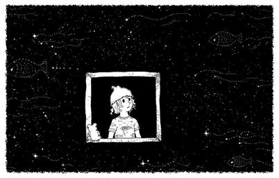 Keywords: night cosmos fairy tale fish window painting cartoon black and white