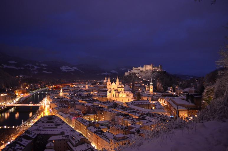 Keywords: night lights road bridge city atmosphere night photograph dark salzburg evening darkness architecture fortress abendstimmung castle light