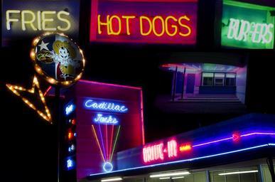Keywords: night neon signs hot dogs bistro dining advertisement food diner restaurant neon
