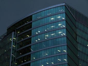 Keywords: night scene building high rise downtown vancouver british columbia canada architecture blue glass facade modern construction