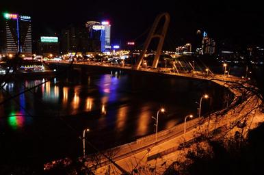 Keywords: night view city urban landscape light bridge home reflection
