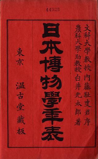Keywords: Nihonhakubutsugakunenpyo.jpg en Shirai Mitsutarō A chronological table of natural history in Japan Tokyo 1891 (With an preface by Naitō Chisō Mitsutarō Shirai 1863-1932 was a Japanese plant pathologist mycologist and herbalist covering both traditional herb studies honzōgaku and modern science This book was re-edited and reprinted several times It refers to source materials some of which have been lost later Collection W Michel Fukuoka ja 内藤 叟序 白井光太郎著 日 博物学年表 京 温古堂蔵 明治二十四年刊 de Shirai Mitsutarō Chronologische Tafel der Naturkunde in Japan Tokyo 1891 (Mit einem Vorwort von Naitō Chisō Mitsutarō Shirai 1863-1932 war ein japanischer Naturforscher dessen immenses Wissen sowohl die traditionelle Heilmittelkunde honzōgaku als auch die modernen Naturwissenschaften umfasste Diese Chronologie enthält eine Reihe von Informationen aus Quellen die später verloren gingen Collection W Michel Fukuoka own WolfgangMichel 2013-02-14 Books about Japan History of Science and technology in Japan History of botany Cc-zero |