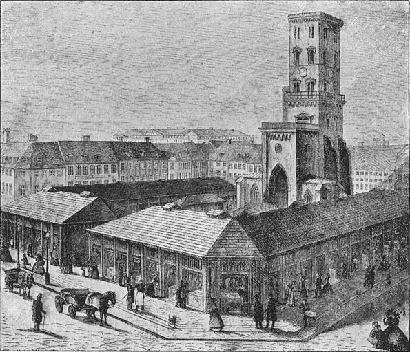 | Keywords: Nikolaj Tårn med Slagterboderne.jpg da Nikolaj Tårn med Slagterboderne Københavns mave Omkring midten af 1800-tallet Scan from the book Det gamle København vol 2 by Knud Bokkenheuser 1869-1936 Saddhiyama 1919 Expired copyright PD-old Kunsthallen Nikolaj Butcher's shops Demolished buildings in Copenhagen Peter Christoph Hagemann |