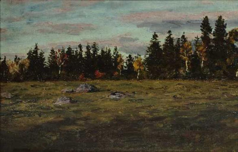 Keywords: Nikolay Dubovskoy Opushka lesa 1900.jpg en Edge of the Forest 1900 Oil on canvas 20 x 27 cm Plyos Museum-Reserve the Russian Federation ru Опушка леса 1900 Холст масло 20 х 27 см Плесский музей-заповедник Российская Феде ация http //plyos narod ru/catalog/web/GROU1/p/Z/21000194 HTM here / здесь Creator Nikolaj Nikanorowitsch Dubowskoj 1900 PD-old-auto-1923 1918 Nikolay Dubovskoy Paintings of forests 1900s landscape paintings 1900 paintings from Russia