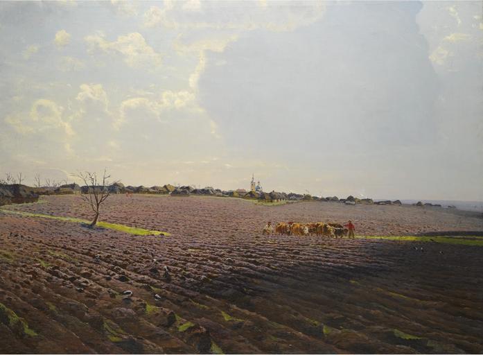| Keywords: Nikolay Dubovskoy Zemlya 1894.jpg Artwork Creator Nikolaj Nikanorowitsch Dubowskoj 1894 oil on canvas cm 104 143 Private collection object history exhibition history credit line Π ΠΡΠ±ΠΎΠ²ΡΠΊΠΎΠΉ 94 ~ lower right signature / date accession number 1 http //www arcadja com/auctions/fr/dubovskoij_nikolaj_nikanorovich/artiste/65143/ Sotheby's via ARCADJA auction results<br/>2 http //www sothebys com/de/auctions/ecatalogue/2010/russian-paintings-part-1-l10118/lot 8 html Sotheby's PD-old-auto-1923 1918 DEFAULTSORT Dubowskoj Nikolay The Land Nikolay Dubovskoy 1890s landscape paintings Images from Sotheby's 1894 paintings from Russia Rural landscape paintings Leningrad School landscape paintings Paintings of oxen |