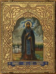 | Keywords: Nil Sorsky (20th c., Atheism museum).jpg Икона «Св ил Со ский» Святой изоб ажен в ост в монашеском одеянии в схиме в левой уке четки а заднем плане слева белокаменные здания х амов ило-Со ской пустыни сп ава на д угом бе егу еки де евянные пост ойки Иоанно-П едтеченского скита за де евянной ог адой Фигу ные о наменти ованные поля имити уют п о езную аму Госуда ственный музей исто ии елигии Идентификационный номе КП-42192 ате иалДе ево масло есто созданияРоссия Разме 38 5 х 28 5 см ил Со ский около 1433-1508 гг к упнейший деятель заволжского ста чества известный духовный писатель Обосновывал идеи духовного нестяжательства и скитского монашеского жития Составил один из пе вых монашеских уставов где изложены ступени спасительности «мысленного делания» и аскетические идеи в духе восточного исихазма От скита на одной сто оне еки Со ы где жил ил на д угом ее бе егу об азовался общежительный монасты ь п еоб азовавшийся в ило-Со скую пустынь С се едины XIX в на месте де евянных це квей ст оились каменные п и закладке каменного х ама Тихвинской Богомате и на месте С етенской и Иоанно-П едтеченской це квей были об етены мощи п еподобного В 1862 г для его мощей в пятиглавом Тихвинском х аме была соо ужена ака а месте кельи святого пост оен де евянный Иоанно-П едтеческий скит ядом де евянный Успенский скит В 1907 г в пустыни ши око отмечали 400-летие кончины св ила Со ского Ве оятно данная икона была создана в этот пе иод Изоб ажение святого на иконах вст ечаются к айне едко http //vm1 culture ru/muzey_istorii_religii/catalog/0002500483/ ачало ХХ в Россия 20 PD-RusEmpire Saint Nil Sorsky Icons in Museum of history of religion Files uploaded by Shakko from various sources Icons of saints with buildings on the background Russian Revival applied arts PD-old |