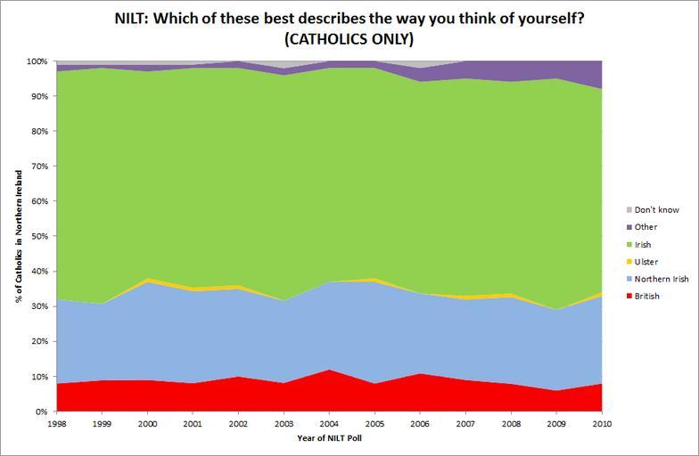 | Keywords: NILT NINATID CATHOLICS.png en Northern Ireland opinion poll on Catholic identity in Northern Ireland Data from the Northern Ireland Life and Times Survey http //www ark ac uk/nilt/ 2011-06-17 own IrishBriton cc-zero Demographics of Northern Ireland |