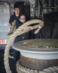 Keywords: Nimitz pulls into San Diego 161010-N-DA275-189.jpg en SAN DIEGO Oct 10 2016 - Seaman Breanna Thweatt a native of Batesville Miss and Seaman Thomas Deems a native of Topsham Maine throw a line off a capstan as USS Nimitz CVN 68 pulls into Naval Air Station North Island Nimitz successfully completed a six-day sea trials officially marking the completion of a 20-month extended planned incremental availability The ship will now begin a training and qualification cycle in preparation for an upcoming 2017 deployment U S Navy photo by Petty Officer 3rd Class Samuel Bacon/Released Unit Navy Media Content Services DVIDS Tags Nimitz; Aircraft Carrier; Navy; Carrier; Sailor; USS Nimitz; US Navy; NMCS; DVIDS Bulk Import; My68 2016-10-10 Samuel H Bacon https //www dvidshub net/image/2913482/nimitz-pulls-into-san-diego 161010-N-DA275-189 2016-10-12 00 25 PACIFIC OCEAN US PD-USGov-Military-Navy Naval Air Station North Island USS Nimitz CVN-68 Images from DoD uploaded by Fæ |