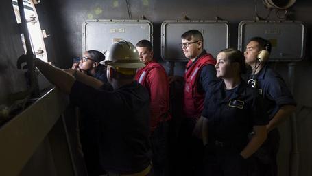 Keywords: Nimitz Sailors pull into San Diego 161010-N-UM507-051.jpg en SAN DIEGO - Sailors look out of a port hole as USS Nimitz pulls into Naval Air Station North Island Nimitz successfully completed a six-day sea trials officially marking the completion of a 20-month extended planned incremental availability The ship will now begin a training and qualification cycle in preparation for an upcoming 2017 deployment Unit Navy Media Content Services DVIDS Tags CVN 68; Sailor; USS Nimitz; US Navy; NMCS; DVIDS Bulk Import; My68 2016-10-10 Oct 10 2016 https //www dvidshub net/image/2914094/nimitz-sailors-pull-into-san-diego 161010-N-UM507-051 2016-10-12 00 43 SAN DIEGO CA US PD-USGov-Military-Navy Naval Air Station North Island USS Nimitz CVN-68 Images from DoD uploaded by Fæ |