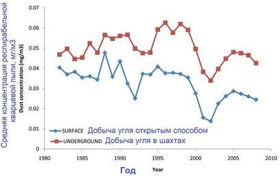 | Keywords: NIOSH-2011-18+.jpg ru Рисунок 18 из обзо а п офзаболеваний шахтё ов http //www cdc gov/niosh/docs/2011-172/pdfs/2011-172 pdf Coal Mine Dust Exposures and Associated Health Outcomes С едняя концент ация пыли еспи абельного ква ца изме енная инспекто ами MSHA в пе иод с 1979 по 2008г в местах добычи отк ытым и подземным способом Видно небольшое снижение концент ации особенно п и добыче отк ытым способом Источник MSHA coal mine inspector and mine operator dust data en Figure 18 Respirable quartz dust Geometric mean exposures by type of coal mine operator and inspector data combined MSHA coal mine inspector and mine operator dust data 2015-04-21 http //www cdc gov/niosh/docs/2011-172/pdfs/2011-172 pdf Coal Mine Dust Exposures and Associated Health Outcomes A Review of Information Published Since 1995 Michael Attfield et al NIOSH USA other versions PD-USGov National Institute for Occupational Safety and Health Mining Workplace safety Workplace safety of Russia Occupational diseases Miners Uploaded with UploadWizard |