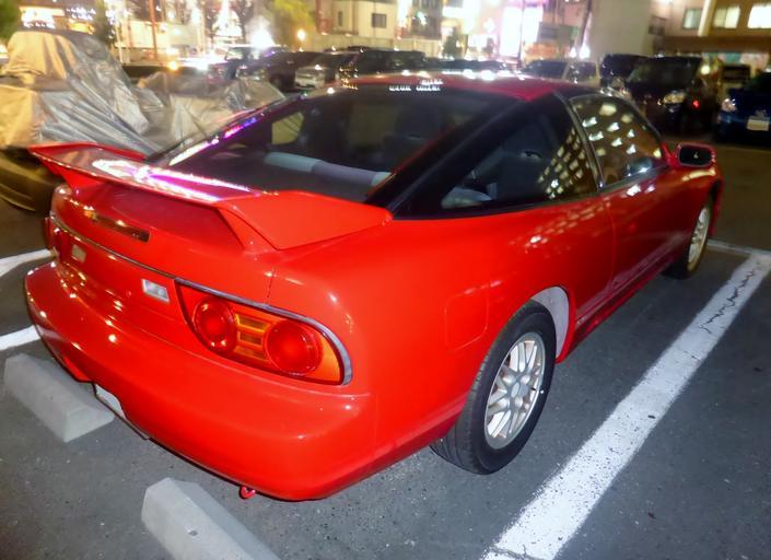 Keywords: Nissan 180SX 2.0 Type S (RPS13) at night rear.JPG ja RPS13型日産・180SX 2 0タイプSを 間にリアから撮影 2014-08-30 19 00 04 own Tokumeigakarinoaoshima 100px cc-zero Uploaded with UploadWizard Red coupes Nissan 180SX