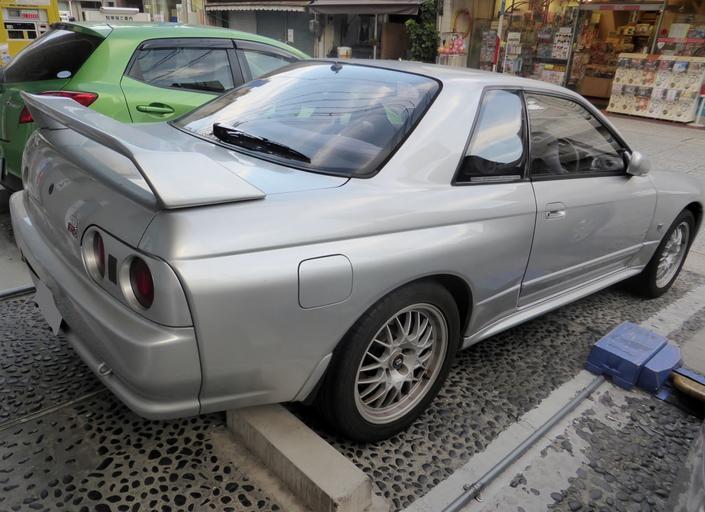 Keywords: Nissan SKYLINE GT-R (E-BNR32) rear.JPG ja E-BNR32型日産・スカイラインGT-Rをリアから撮影 2014-09-14 18 02 27 own Tokumeigakarinoaoshima 100px cc-zero Uploaded with UploadWizard Nissan Skyline R32 GT-R Silver coupes