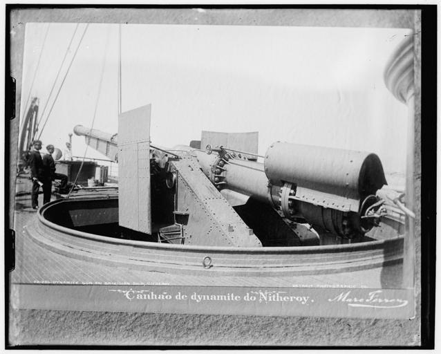 | Keywords: Nitheroy dynamite gun LOC 4a14969v.jpg Photograph of dynamite gun on Brazilian warship Nitheroy Nictheroy 1 negative glass ; 8 x 10 in det 4a14969 Library of Congress Prints and Photographs Division Washington D C 20540 USA Reproduction Number LC-D4-21236 b w glass neg Call Number LC-D4-21236 Photograph of a photographic print signed Marc Ferrez Later the U S cruiser Buffalo Detroit Publishing Co no 021236 Gift; State Historical Society of Colorado; 1949 circa 1892-1901 Ferrez Marc 1843-1923 photographer PD-USGov Dynamite guns Naval ships of Brazil |