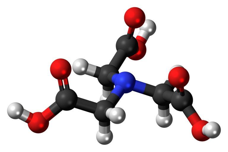 | Keywords: Nitrilotriacetic acid molecule ball.png Ball-and-stick model of the nitrilotriacetic acid molecule a chelating agent This image shows the electrically neutral form Color code 505050 Carbon C black<br> F0F0F0 Hydrogen H white<br> F51E1E Oxygen O red<br> 3C50FA Nitrogen N blue<br> 2011-09-21 own DS Visualizer Jynto talk Neutral form space-filling version Zwitterionic form ball-and-stick version Zwitterionic form space-filling version cc-zero Images by Jynto Tricarboxylic acids Tertiary amines Chelating agents |