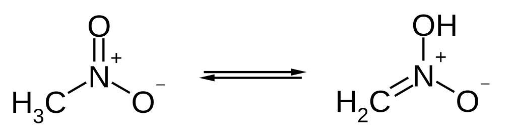 Keywords: Nitromethane tautomerism.svg en Tautomerism of nitromethane de Tautomerie von Nitromethan own Steffen 962 2011-03-23 PD-chem Cc-zero Nitromethane Tautomerism