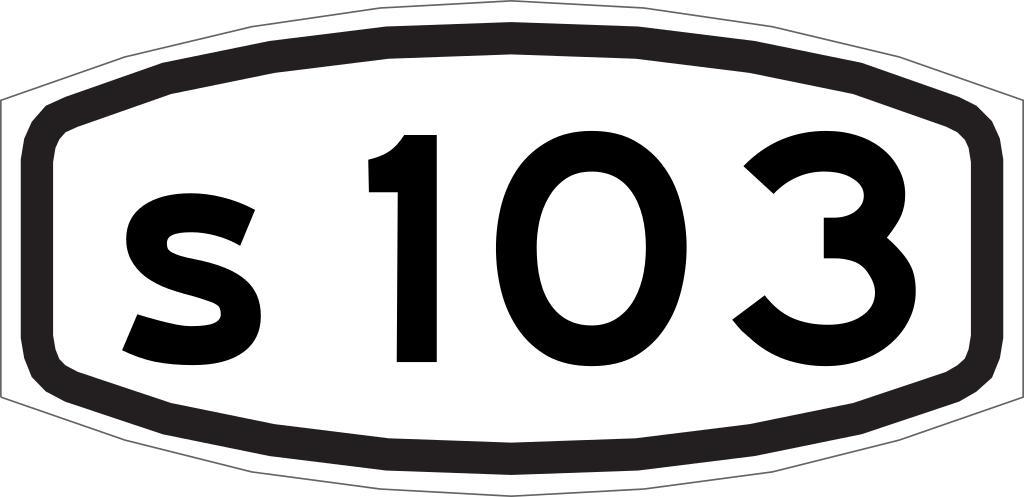 Keywords: NLD-S103.svg Route marker for city routes in Amsterdam Routenummer bord voor stadsroutes in Amsterdam own 2015-03-18 Fredddie PD-NL-verkeersbord Diagrams of S-road number signs of the Netherlands