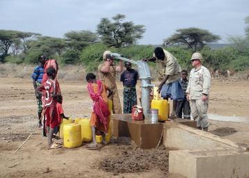 | Keywords: NMCB 74 Seabees Drill Water Well in Horn of Africa DVIDS372651.jpg en Petty Officer 2nd Class Kevin Clayton and Petty Officer 1st Class Dennis Hill Seabees assigned to Naval Mobile Construction Battalion 74 Detail Horn of Africa's Water Well Team test the pump on their recently completed water well in the village of Jedane Ethiopia The 302-foot-deep well provides clear water to more than 3 400 locals and their livestock NMCB 74 Det HOA is deployed to support Combined Joint Task Force-Horn of Africa in building partner nation capacity and promoting regional stability through construction engineering support in accordance with the U S Maritime Strategy 2011-02-15 left https //www dvidshub net/image/372651 110215-N-+++++-003 2011-03-02 11 24 JEDANE ET PD-USGov-Military-Navy Combined Joint Task Force - Horn of Africa Images from DoD uploaded by Fæ |