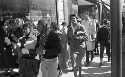 | Keywords: blackandwhite monochrome black and white Civil Rights protesters and Woolworth's Sit-In, Durham, NC, 10 February 1960. From the N&O Negative Collection, State Archives of North Carolina, Raleigh, NC. Photos taken by The News & Observer, COPYRIGHT N&O. Illegal to use or public without expressed permission from The News & Observer newspaper, Raleigh, NC. Civil Rights protesters and Woolworth's Sit-In, Durham, NC, 10 February 1960. From the N&O Negative Collection, State Archives of North Carolina, Raleigh, NC. Photos taken by The News & Observer, COPYRIGHT N&O. Illegal to use or public without expressed permission from The News & Observer newspaper, Raleigh, NC. |