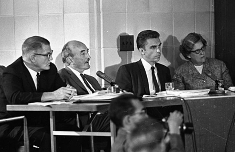 | Keywords: blackandwhite monochrome indoor black and white On June 26, 1963, the North Carolina General Assembly passed the Act to Regulate Visiting Speakers, later known as the Speaker Ban Law. The law forbade anyone to speak on a University of North Carolina campus who was a known member of the Communist Party, was known to advocate overthrow of the United States Constitution, or had invoked the Fifth Amendment in respect of communist or "subversive" connections. The law was rushed through in the closing hours of the legislative session with virtually no debate. Governor Terry Sanford was against the Speaker Ban bill, but at that time the governor of North Carolina could not veto legislation. In the wake of the passage of this law, the communities on the UNC campuses rose up in protest. Students, faculty, and community members protested the law and what it represented over the course of the next several years. A number of complex issues involving many key North Carolina political figures and national leaders kept the controversy very active and widely debated through the mid-1960's. In 1965, the North Carolina General Assembly established a commission to look into the consequenses of the law and recommend either ammedment or repeal of the law. The commission held public hearings in August and September of 1965 and in November amended the law absolving the state legislature from having to make rulings on who could speak on campuses and who could not and returning effective control over those issues to the universities. (Speaker Ban Law Study Commission records are held by the State Archives of North Carolina; finding aid is online www.archives.ncdcr.gov/findingaids/pdf/sa_speaker_ban_law...). In 1966 students at the University of North Carolina at Chapel Hill led by Student Body President Paul Dickson invited Herbert Aptheker and Frank Wilkinson ('known' Communists) to speak on the campus. As expected, the university refused to allow either of the speakers to give their speeches on campus. Instead, they addressed the assembled crowd on March 2, 1966, from across the stone wall that separates the university from the town of Chapel Hill. Ultimately a federal law suit against the university and the State of North Carolina was filed by UNC students. On February 19, 1968, after two years of consideration by the Federal District Court in Greensboro, Dickson, et al. v Sitterson, et al. was decided for the plaintiffs -- the court's opinion found the Speaker Ban law and policy unconstitutional. For more information on the Speaker Ban Law, its complexities, and surrounding events, please see this online exhibit and collection www.lib.unc.edu/mss/exhibits/protests/ban.html, NCpedia entry ncpedia.org/speaker-ban-law, and www.northcarolinahistory.org/commentary/187/entry/, used in the drafting of the above description of this set of images. COPYRIGHTED BY THE RALEIGH NEWS AND OBSERVER NEWSPAPER. DO NOT USE OR PUBLISH WITHOUT EXPRESSED CONSENT FROM THE N&O. On June 26, 1963, the North Carolina General Assembly passed the Act to Regulate Visiting Speakers, later known as the Speaker Ban Law. The law forbade anyone to speak on a University of North Carolina campus who was a known member of the Communist Party, was known to advocate overthrow of the United States Constitution, or had invoked the Fifth Amendment in respect of communist or "subversive" connections. The law was rushed through in the closing hours of the legislative session with virtually no debate. Governor Terry Sanford was against the Speaker Ban bill, but at that time the governor of North Carolina could not veto legislation. In the wake of the passage of this law, the communities on the UNC campuses rose up in protest. Students, faculty, and community members protested the law and what it represented over the course of the next several years. A number of complex issues involving many key North Carolina political figures and national leaders kept the controversy very active and widely debated through the mid-1960's. In 1965, the North Carolina General Assembly established a commission to look into the consequenses of the law and recommend either ammedment or repeal of the law. The commission held public hearings in August and September of 1965 and in November amended the law absolving the state legislature from having to make rulings on who could speak on campuses and who could not and returning effective control over those issues to the universities. (Speaker Ban Law Study Commission records are held by the State Archives of North Carolina; finding aid is online www.archives.ncdcr.gov/findingaids/pdf/sa_speaker_ban_law...). In 1966 students at the University of North Carolina at Chapel Hill led by Student Body President Paul Dickson invited Herbert Aptheker and Frank Wilkinson ('known' Communists) to speak on the campus. As expected, the university refused to allow either of the speakers to give their speeches on campus. Instead, they addressed the assembled crowd on March 2, 1966, from across the stone wall that separates the university from the town of Chapel Hill. Ultimately a federal law suit against the university and the State of North Carolina was filed by UNC students. On February 19, 1968, after two years of consideration by the Federal District Court in Greensboro, Dickson, et al. v Sitterson, et al. was decided for the plaintiffs -- the court's opinion found the Speaker Ban law and policy unconstitutional. For more information on the Speaker Ban Law, its complexities, and surrounding events, please see this online exhibit and collection www.lib.unc.edu/mss/exhibits/protests/ban.html, NCpedia entry ncpedia.org/speaker-ban-law, and www.northcarolinahistory.org/commentary/187/entry/, used in the drafting of the above description of this set of images. COPYRIGHTED BY THE RALEIGH NEWS AND OBSERVER NEWSPAPER. DO NOT USE OR PUBLISH WITHOUT EXPRESSED CONSENT FROM THE N&O. |