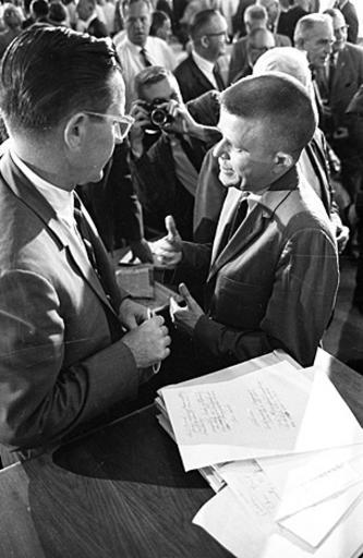 | Keywords: blackandwhite monochrome black and white On June 26, 1963, the North Carolina General Assembly passed the Act to Regulate Visiting Speakers, later known as the Speaker Ban Law. The law forbade anyone to speak on a University of North Carolina campus who was a known member of the Communist Party, was known to advocate overthrow of the United States Constitution, or had invoked the Fifth Amendment in respect of communist or "subversive" connections. The law was rushed through in the closing hours of the legislative session with virtually no debate. Governor Terry Sanford was against the Speaker Ban bill, but at that time the governor of North Carolina could not veto legislation. In the wake of the passage of this law, the communities on the UNC campuses rose up in protest. Students, faculty, and community members protested the law and what it represented over the course of the next several years. A number of complex issues involving many key North Carolina political figures and national leaders kept the controversy very active and widely debated through the mid-1960's. In 1965, the North Carolina General Assembly established a commission to look into the consequenses of the law and recommend either ammedment or repeal of the law. The commission held public hearings in August and September of 1965 and in November amended the law absolving the state legislature from having to make rulings on who could speak on campuses and who could not and returning effective control over those issues to the universities. (Speaker Ban Law Study Commission records are held by the State Archives of North Carolina; finding aid is online www.archives.ncdcr.gov/findingaids/pdf/sa_speaker_ban_law...). In 1966 students at the University of North Carolina at Chapel Hill led by Student Body President Paul Dickson invited Herbert Aptheker and Frank Wilkinson ('known' Communists) to speak on the campus. As expected, the university refused to allow either of the speakers to give their speeches on campus. Instead, they addressed the assembled crowd on March 2, 1966, from across the stone wall that separates the university from the town of Chapel Hill. Ultimately a federal law suit against the university and the State of North Carolina was filed by UNC students. On February 19, 1968, after two years of consideration by the Federal District Court in Greensboro, Dickson, et al. v Sitterson, et al. was decided for the plaintiffs -- the court's opinion found the Speaker Ban law and policy unconstitutional. For more information on the Speaker Ban Law, its complexities, and surrounding events, please see this online exhibit and collection www.lib.unc.edu/mss/exhibits/protests/ban.html, NCpedia entry ncpedia.org/speaker-ban-law, and www.northcarolinahistory.org/commentary/187/entry/, used in the drafting of the above description of this set of images. COPYRIGHTED BY THE RALEIGH NEWS AND OBSERVER NEWSPAPER. DO NOT USE OR PUBLISH WITHOUT EXPRESSED CONSENT FROM THE N&O. On June 26, 1963, the North Carolina General Assembly passed the Act to Regulate Visiting Speakers, later known as the Speaker Ban Law. The law forbade anyone to speak on a University of North Carolina campus who was a known member of the Communist Party, was known to advocate overthrow of the United States Constitution, or had invoked the Fifth Amendment in respect of communist or "subversive" connections. The law was rushed through in the closing hours of the legislative session with virtually no debate. Governor Terry Sanford was against the Speaker Ban bill, but at that time the governor of North Carolina could not veto legislation. In the wake of the passage of this law, the communities on the UNC campuses rose up in protest. Students, faculty, and community members protested the law and what it represented over the course of the next several years. A number of complex issues involving many key North Carolina political figures and national leaders kept the controversy very active and widely debated through the mid-1960's. In 1965, the North Carolina General Assembly established a commission to look into the consequenses of the law and recommend either ammedment or repeal of the law. The commission held public hearings in August and September of 1965 and in November amended the law absolving the state legislature from having to make rulings on who could speak on campuses and who could not and returning effective control over those issues to the universities. (Speaker Ban Law Study Commission records are held by the State Archives of North Carolina; finding aid is online www.archives.ncdcr.gov/findingaids/pdf/sa_speaker_ban_law...). In 1966 students at the University of North Carolina at Chapel Hill led by Student Body President Paul Dickson invited Herbert Aptheker and Frank Wilkinson ('known' Communists) to speak on the campus. As expected, the university refused to allow either of the speakers to give their speeches on campus. Instead, they addressed the assembled crowd on March 2, 1966, from across the stone wall that separates the university from the town of Chapel Hill. Ultimately a federal law suit against the university and the State of North Carolina was filed by UNC students. On February 19, 1968, after two years of consideration by the Federal District Court in Greensboro, Dickson, et al. v Sitterson, et al. was decided for the plaintiffs -- the court's opinion found the Speaker Ban law and policy unconstitutional. For more information on the Speaker Ban Law, its complexities, and surrounding events, please see this online exhibit and collection www.lib.unc.edu/mss/exhibits/protests/ban.html, NCpedia entry ncpedia.org/speaker-ban-law, and www.northcarolinahistory.org/commentary/187/entry/, used in the drafting of the above description of this set of images. COPYRIGHTED BY THE RALEIGH NEWS AND OBSERVER NEWSPAPER. DO NOT USE OR PUBLISH WITHOUT EXPRESSED CONSENT FROM THE N&O. |