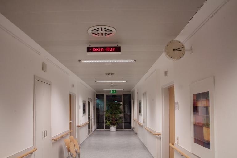 Keywords: no call hospital ad display ceiling lighting vent vent cover ventilation slots clock time of early morning darkness doors floor gang wide very long warnschild e2 mark floor marking door escape night lighting light cool