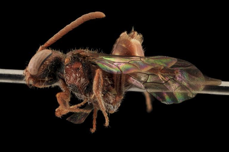 | Keywords: bug bugs bee bees pollinator pollinators animal animals animalia arthropod arthropods arthropoda insect insects insecta hymenoptera aculeata anthophila apoidea cuckoo bee cuckoobee cuckoo bees cuckoobees apidae apinae nomadinae nomada nomada parva nomadaparva taxonomy:binomial=nomada parva taxonomy:binomial=nomadaparva biml usgs droege zerene stacker zerenestacker stackshot parasite nest parasite nestparasite inquiline usgsbiml black background One of the tiniest of all the Nomada..so small that it made no sense to try and Photoshop out the pin on which it was glued. We are production operation, rarely do we have the luxury of having specimens that we can prepare beforehand for picture taking. Thus you take what is given to you. In this case the pin and the clear glue are not that distracting and even a bit attractive, particularly with the interference patterns in the wings. Specimen collected in Wicomico County by Brooke Alexander who also took the picture Canon Mark II 5D, Zerene Stacker, 65mm Canon MP-E 1-5X macro lens, Twin Macro Flash, F5.0, ISO 100, Shutter Speed 200 One of the tiniest of all the Nomada..so small that it made no sense to try and Photoshop out the pin on which it was glued. We are production operation, rarely do we have the luxury of having specimens that we can prepare beforehand for picture taking. Thus you take what is given to you. In this case the pin and the clear glue are not that distracting and even a bit attractive, particularly with the interference patterns in the wings. Specimen collected in Wicomico County by Brooke Alexander who also took the picture Canon Mark II 5D, Zerene Stacker, 65mm Canon MP-E 1-5X macro lens, Twin Macro Flash, F5.0, ISO 100, Shutter Speed 200 |