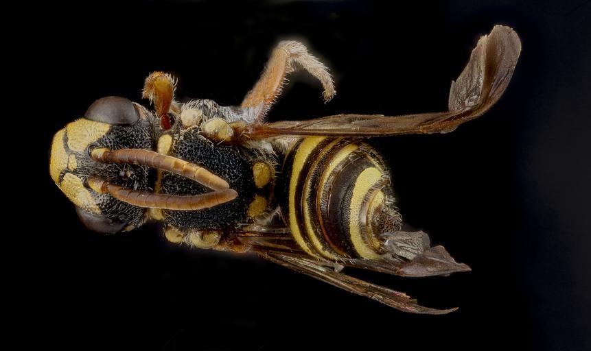 | Keywords: biml bee nomada taxonomy:binomial=nomada texana taxonomy:binomial=nomadatexana nomada texana nomadatexana usgs bug bugs bees animal animals animalia arthropod arthropods arthropoda insect insects insecta hymenoptera aculeata anthophila apoidea cuckoo bee cuckoobee cuckoo bees cuckoobees nomadinae male back dorsal antenna antennae ocelli striped banded black and yellow blackandyellow pwrc patuxent wildlife research center usgs pollinator pwrcpatuxentwildliferesearchcenterusgspollinator zerene stacker zerenestacker zerene stacked macro macro photography macrophotography droege stackshot usgsbiml black background Nomada texana, male Nomada texana, male |