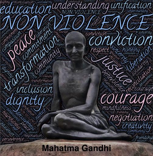 Keywords: non-violence peace transformation leadership inspiration symbol gandhi mahatma concepts and ideas dignity liberation freedom education justice courage diversity discrimination equality emancipation human movements people rights