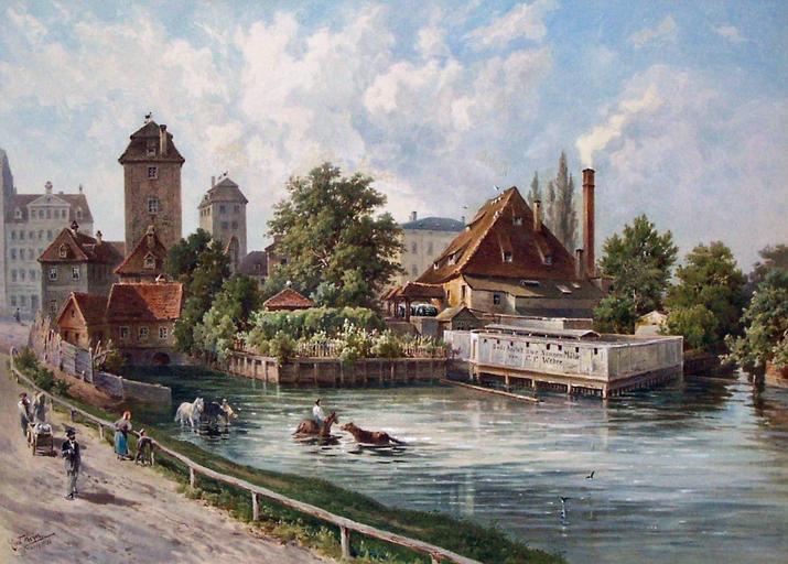 | Keywords: Nonnenmühle v. Nord.jpg de Die Nonnenmühle in Leipzig von Norden mit den beiden Wasserkünsten links Aquarell von Ernst Heyn um 1890 Stadtgeschichtliches Museum Leipzig Inv Nr H 474 Ernst Heyn 1841-1894 1890 Mills in Leipzig Flussbäder in Leipzig Ernst Friedrich Heyn PD-old |