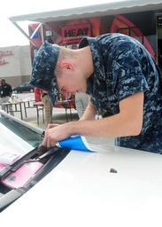 Keywords: Norfolk sailors provide VIN etching service 121003-N-YC505-022.jpg en Hospital Corpsman William Wooten temporarily assigned to the Naval Station Norfolk Police Precinct etches vehicle identification numbers onto a car in the Navy Exchange parking lot Oct 3 HEAT Help Eliminate Auto Theft provided a free VIN etching service to service members U S Navy photo by Mass Communication Specialist 3rd Class Molly Anne Greendeer 2012-10-03 Molly Treece https //www dvidshub net/image/677176 121003-N-YC505-022 2012-10-06 23 26 NORFOLK VA US PD-USGov-Military-Navy Naval Station Norfolk Images from DoD uploaded by Fæ |