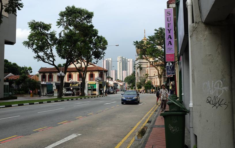 Keywords: kampong glam kampongglam north bridge road singapore public domain publicdomain outdoor sidewalk The extension of North Bridge Road was bent to accommodate Sultan Mosque, which is aligned to face Mecca The extension of North Bridge Road was bent to accommodate Sultan Mosque, which is aligned to face Mecca