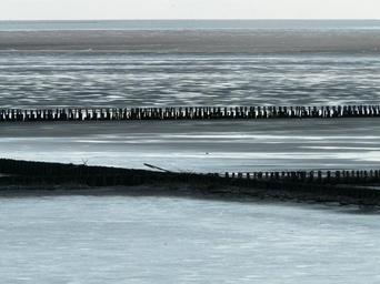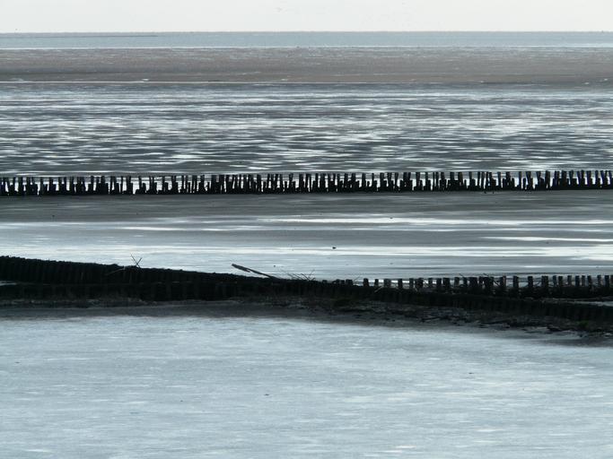 Keywords: north sea breakwater wall water sea ocean back light risk gloomy threatening