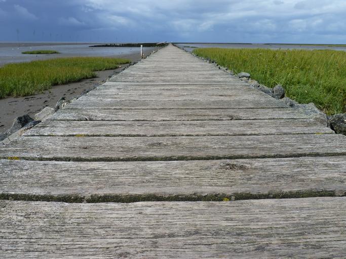 Keywords: north sea web wadden sea ebb boards lonely boardwalk away wide nature landscape