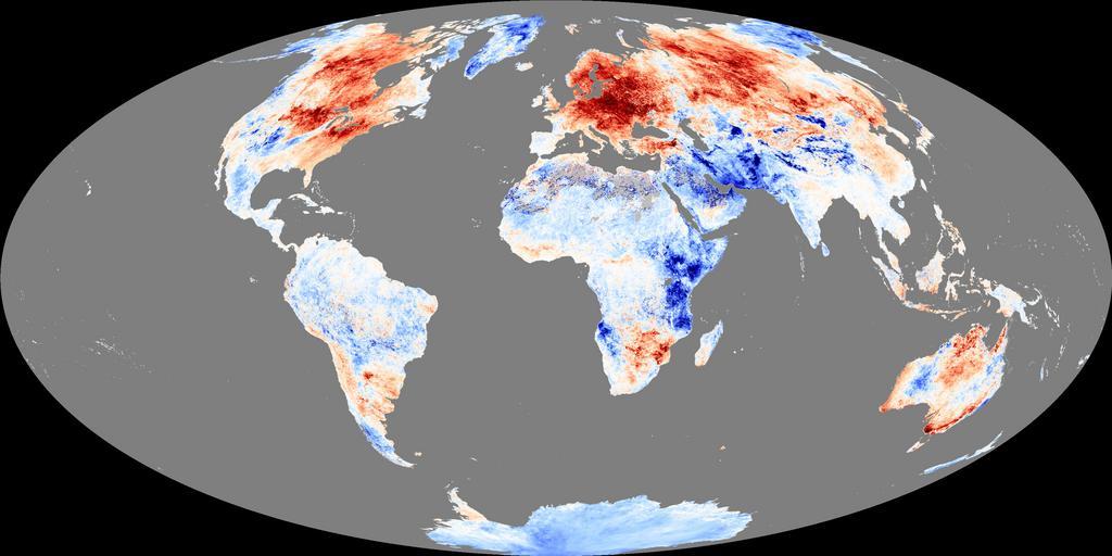 | Keywords: Northern Hemisphere Temperatures Mild in December 2006, Image of the Day DVIDS857308.jpg en As of early January 2007 the 2006-2007 Northern Hemisphere winter was proving to be a mild one in terms of temperatures In North America significant snows had yet to fall in many of the usual places including most of New England In the United States' capital the city's famous cherry trees welcomed the new year with blooms -- a show they don't normally put on until spring In Europe World Cup ski events had to be moved postponed or canceled because of lack of snow in the mountains The unusually warm temperatures are apparent in this image which shows the December 2006 land surface temperature compared to the average December temperatures from 2000-2005 Land surface temperatures are how hot or cool the land surface would feel to the touch It is different from the air temperature which is what weather stations usually measure Based on data from the Moderate Resolution Imaging Spectroradiometer modis gsfc nasa gov MODIS on NASA's terra nasa gov Terra satellite the image shows places where daytime land surface temperatures were above the five-year average in red places where it was below the average in blue and places near the average as white Dramatic swaths of red paint most of the Northern Hemisphere In parts of Central Canada the North American Great Lakes region eastern and northern Europe and central Siberia the land surface was up to 10 degrees Celsius warmer than in the recent past This pattern of unusual warmth across both North America and Eurasia is different from conditions observed by MODIS in the previous winter; in earthobservatory nasa gov/Newsroom/NewImages/images php3 img_id 17173 January 2006 North America was warmer than average while Eurasia was chillier than average A few notable colder-than-normal spots stand out in the image In the central United States several whopping earthobservatory nasa gov/NaturalHazards/natural_hazards_v2 php3 img_id 14064 snow storms laid down a chilly blanket over the land surface in late December creating a blue ribbon of cooler-than-normal temperatures that stretched northeastward from Colorado to Lake Michigan Both Russia's Far East upper right and Southwest Asia were cooler than average as well Persistent heavy rains in earthobservatory nasa gov/NaturalHazards/natural_hazards_v2 php3 img_id 14026 East Africa in late 2005 may be responsible for that region's cooler-than-average condition in December Since Northern Hemisphere fall 2006 an earthobservatory nasa gov/Newsroom/NewImages/images php3 img_id 17501 El Nino had been brewing in the Pacific Ocean making ocean surface temperatures in the eastern Pacific warmer than average and those in the Western Pacific cooler than average During moderate to strong El Nino events winters in the United States are often mild with above-average precipitation in the country's southwest and southeast NASA Identifier globallsta_tmo_200612 2011-07-07 Glenn Research Center https //www dvidshub net/image/857308 857308 2013-02-08 19 48 WASHINGTON D C US PD-USGov Lake Michigan Images from DoD uploaded by Fæ |