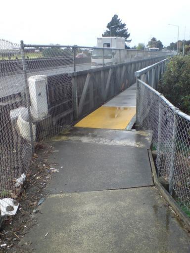 Keywords: Northwestern Cycleway Clip-On Bridge I.jpg A rather run-down and very narrow clip-on bridge at the western end of the Northwestern Cycleway in Auckland New Zealand Not exactly one of the route's highlights the bridge is slippery with some sort of rubber mats laid over a metal mesh grating and actually asks cyclists to dismount most of course don't - people want to ride not push Thankfully this is slated to be replaced with a better bridge in the coming years as one of the smaller blessings to come out of the relentless drive for new motorways that is occuring in New Zealand in the early 2010s self-photographed 2010 Uploader -36 8526277 174 6402758 Photos taken by Ingolfson 2010 in New Zealand Northwestern Cycleway Bikeway bridges in Auckland Footbridges in Auckland State Highway 16 New Zealand Fences in New Zealand |
