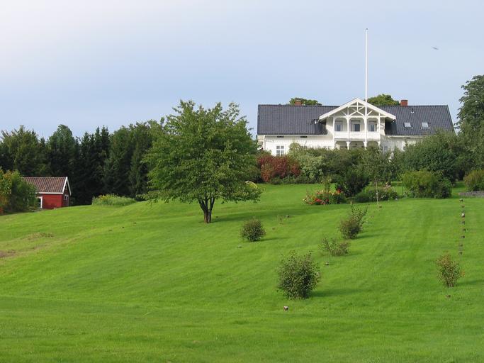 Keywords: norway landscape sky clouds house home farm trees lawn yard grass plants nature outside architecture rural country countryside summer spring