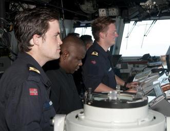 Keywords: Norwegian Midshipman 120720-N-HU377-031.jpg en Eivind Vedlog and Frank Andersen both from the Royal Norwegian Naval Academy in Bergen Norway observe bridge operations during their visit aboard the amphibious assault ship USS Peleliu LHA 5 as part of the foreign exchange training of midshipmen program The program helps foreign midshipmen gain professional and personal experience by working with other military cultures U S Navy photo by Mass Communication Specialist Seaman Dustin Knight/Released 2012-07-20 Petty Officer 3rd Class Dustin Knight https //www dvidshub net/image/630858 120720-N-HU377-031 2012-07-24 03 48 PACIFIC OCEAN PD-USGov-Military-Navy USS Peleliu LHA-5 Images from DoD uploaded by Fæ |