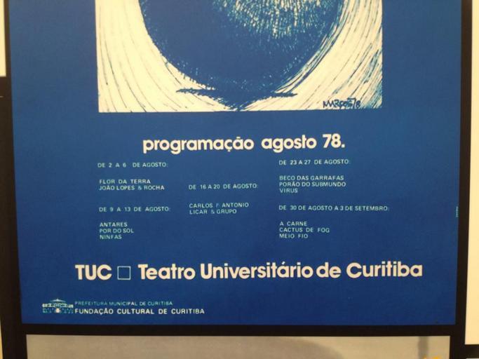 | Keywords: Nossa Gente Nova 1978 (detalhe).jpg en Promotional poster of 'Nossa Gente Nova' festival 1978 in TUC Teatro Universitário de Curitiba University Theater of Curitiba Curitiba Paraná Brazil This specific poster announces presentations during August Flor da Terra João Lopes Rocha Antares Pôr do Sol Nymphas Grupo Nymphas Carlos Antônio Licar Grupo Beco das Garrafas Porão do Submundo Vírus A Carne Cactus de Fog and Meio Fio I do not own the rights to the contents of the poster but I took the photo during the cultural exhibition entitled 'FUNDAÇÃO CULTURAL EM CARTAZ - Mais de 40 anos de história' in Curitiba Paraná Brazil This is the same poster as File Nossa Gente Nova 1978 jpg pt Pôster promocional do festival Nossa Gente Nova em 1978 no TUC Teatro Universitário de Curitiba em Curitiba Paraná Brasil Este pôster em particular anuncia apresentações durante o mês de agosto Flor da Terra João Lopes Rocha Antares Pôr do Sol Nymphas Grupo Nymphas Carlos Antônio Licar Grupo Beco das Garrafas Porão do Submundo Vírus A Carne Cactus de Fog e Meio Fio Eu não tenho os direitos sobre o conteúdo do poster apenas sobre a foto que foi tirada durante a exibição cultural FUNDAÇÃO CULTURAL EM CARTAZ - Mais de 40 anos de história em Curitiba Paraná Brasil Este pôster é o mesmo que File Nossa Gente Nova 1978 jpg 2014-06-11 23 04 45 own LipeFontoura cc-zero Uploaded with UploadWizard Music of Brazil Culture of Brazil Curitiba Culture of Curitiba |