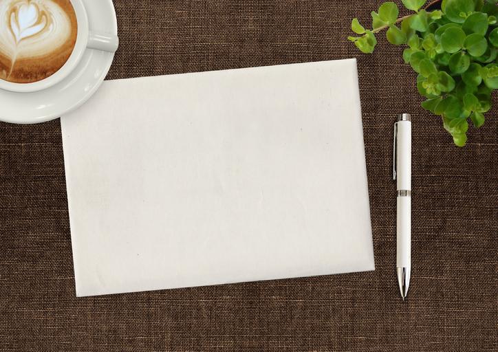 Keywords: note pad pen coffee cup plant desk writing paper pad note office notebook blank notepad