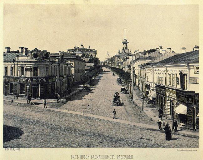 MAKE A MEME View Large Image Novaya Basmannaya Moscow1888.jpg Novaya Basmannaya Street from Razgulyai in Moscow Russia in 1888 A photo from N A Naidyonov's album printed in the 19th century  овая Басманная улица от Разгуляя в  оскве ...