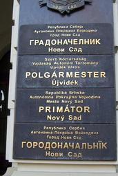 Keywords: Novi Sad mayor office.jpg Novi Sad mayor office Nadpisy na Městském úřadu v Novém Sadu ve čtyřech jazycích; srbsky maďarsky slovensky a rusínsky Plaque in front of Mayor's office written in four official languages used in the City of Novi Sad Serbian Hungarian Slovak and Rusyn en wikipedia 2006-11-11 Goran Smith2 wikipedia en Goran Smith2 original upload log page en wikipedia Novi_Sad_mayor_office jpg 2006-11-11 09 16 Goran Smith2 1088×1632×8 543392 bytes <nowiki>Novi Sad images</nowiki> Languages of Serbia Culture of Vojvodina Signs in Novi Sad Serbian inscriptions Hungarian inscriptions Slovak inscriptions Rusyn language Multilingualism Multiculturalism |