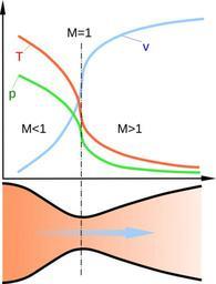 | Keywords: Nozzle de Laval diagram.svg Диаг амма иллюст и ующая аботу сопла Лаваля; T - абсолютная темпе ату а газа; p - давление; v - ско ость; - Число аха<br> gas characteristc along a de Laval nozzle T - absolute temperature; p - pressure; v - speed; M - Mach number<br> Laval fúvóka jellemzői a fúvóka hossza mentén T - abszolút hőmérséklet; p -nyomás; M - Mach szám own 2008-02-10 ЮК De Laval steam turbines Steam turbine pressure - velocity diagrams Convergent-divergent nozzles | ||||