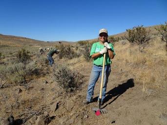 Keywords: volunteers volunteering blmvolunteers public lands publiclands your public lands yourpubliclands celebrating your public lands celebratingyourpubliclands california blmcalifornia npld national public lands day nationalpubliclandsday trails cleanup recreation partners 4h interns neighbors mountain outdoor landscape hill The BLM Eagle Lake Field Office NPLD event included a trails construction project for Bald Mountain and a trash clean-up at a separate location on Bald Mountain. 35 volunteers and 3 BLM staff including, two seasonal Chicago Botanical Garden interns who have been working for BLM this summer joined in to help. The trash clean-up crew included Lassen County Hoof Beats 4H youth and adults as well as other volunteers and BLM staff, Jessie Diermeir and Marisa Williams. The trail building crew included members of the Backcountry Horseman Club's' High Country Unit made up of members from Lassen and Modoc Counties. Other trail building volunteers included local hikers, runners and mountain bikers and three neighbors who live adjacent to Bald Mountain. The trail building crew was organized by BLM Outdoor Recreation Planner, Stan Bales with assistance from Matt McClain, Lassen County Trails Coordinator. Photo by Stan Bales, BLM. The BLM Eagle Lake Field Office NPLD event included a trails construction project for Bald Mountain and a trash clean-up at a separate location on Bald Mountain. 35 volunteers and 3 BLM staff including, two seasonal Chicago Botanical Garden interns who have been working for BLM this summer joined in to help. The trash clean-up crew included Lassen County Hoof Beats 4H youth and adults as well as other volunteers and BLM staff, Jessie Diermeir and Marisa Williams. The trail building crew included members of the Backcountry Horseman Club's' High Country Unit made up of members from Lassen and Modoc Counties. Other trail building volunteers included local hikers, runners and mountain bikers and three neighbors who live adjacent to Bald Mountain. The trail building crew was organized by BLM Outdoor Recreation Planner, Stan Bales with assistance from Matt McClain, Lassen County Trails Coordinator. Photo by Stan Bales, BLM. |